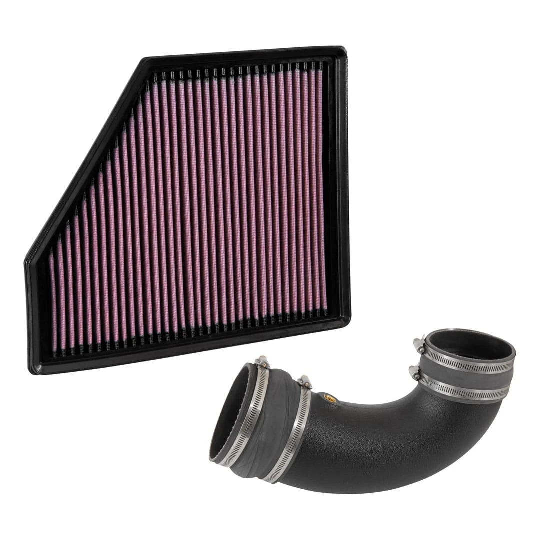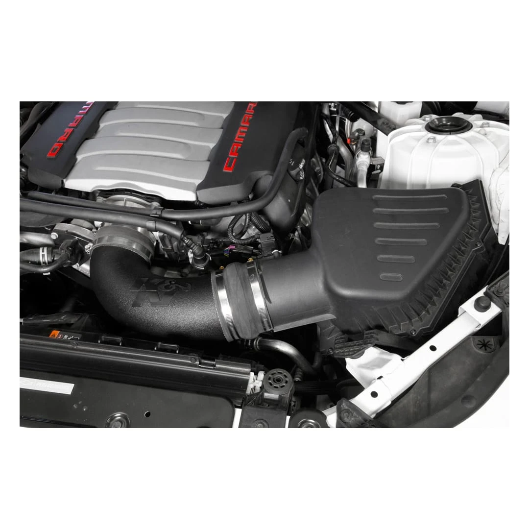 The K&N 57-3092 FIPK air intake system replaces the restrictive factory air filter and air intake housing on specific Chevrolet Camaro SS models. K&N air intakes are designed to dramatically reduce air intake restriction as well as smooth and straighten air flow. This allows your engine to inhale a larger amount of air than the factory air filter assembly. More air means more usable power and acceleration throughout the engine’s RPM range. The air intake comes with a chrome topped K&N high-flow air filter and a heat shield that installs into the original air box space. Air is directed through an aerodynamically engineered intake tube into the engine’s throttle body for a guaranteed power gain. The tube accommodates the factory mass air sensor and crank case vent hose. The oversized cone shaped air filter can be used for up to 100,000 miles before servicing is needed depending on driving conditions. This air intake is relatively easy to install, usually in 90 minutes or less using your vehicle’s existing factory mounting points.