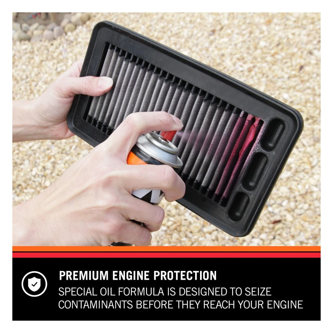 K&N® Recharger® Kit 99-5000 is designed to restore the performance of your K&N® oiled cotton air filter, and includes a 6.5-ounce aerosol can of oil and a 12-ounce spray bottle of POWER KLEEN®. POWER KLEEN® industrial strength degreaser helps dissolve dirt, old filter oil, and other filter-clogging particulates, allowing them to be rinsed away easily with® water. When used as directed, the included air filter oil remains suspended in the pleats of the cotton filter material, allowing for exceptional contaminant capture. View the complete cleaning instructions included in your kit.