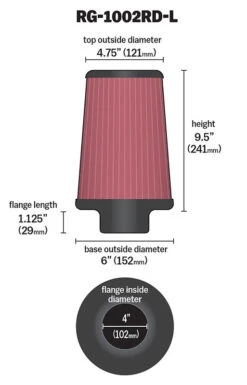 K&N High-Flow Original Universal Air Filter – 6-5/8″ B-OD, 4″ B-ID, 2-3/8″ T-OD, 5-1/4″ H
