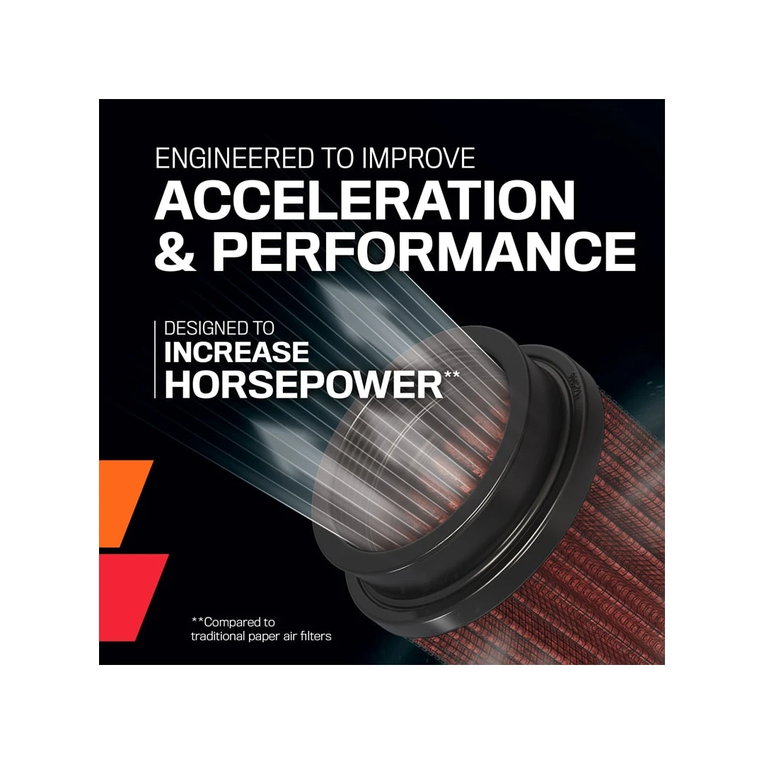 - ENGINEERED POWER: State-of-the-art air filter media is designed to increase horsepower and acceleration as well as improve overall engine performance