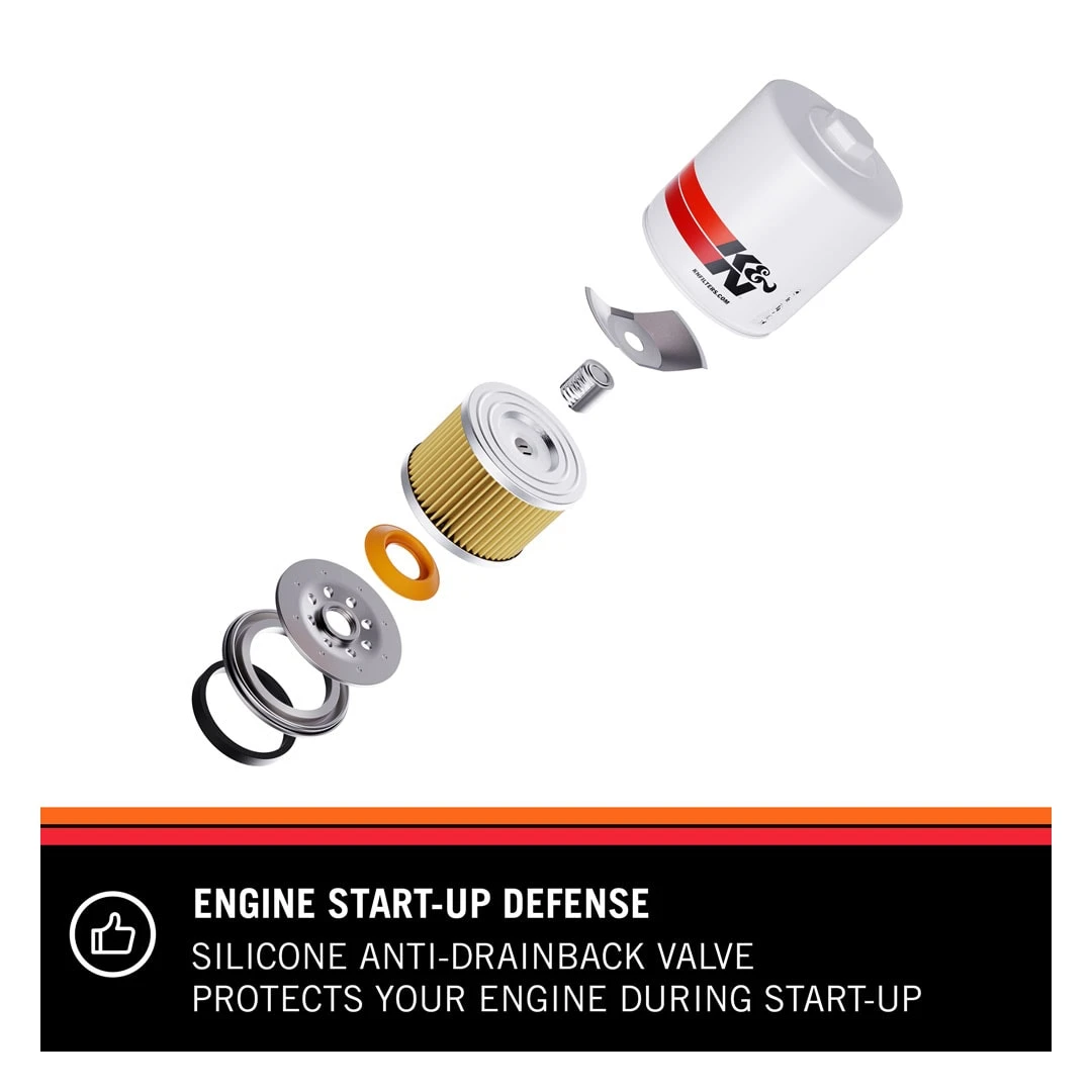 K&N® premium oil filters are meticulously engineered to offer outstanding filtration and engine protection. Designed to operate with all synthetic, conventional, and blended motor oils, K&N’s pleated synthetic-blend filtration media helps to shield your engine from contaminants and ensure a consistent flow of oil. The heavy-duty canister is engineered to be exceptionally durable, and a one-inch welded hex nut can be used for quick and easy filter removal. Each filter is specifically designed to withstand the service intervals recommended by vehicle manufacturers, and is protected by the K&N® 1-Year Limited Warranty.