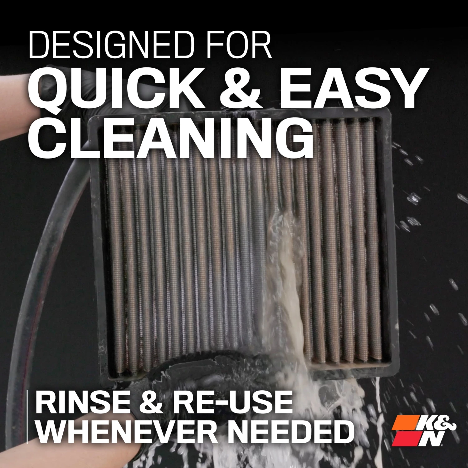K&N’s Refresher kit for washable cabin air filters comes with a 12 ounce pump spray bottle of cabin filter cleaner, an 8 ounce pump spray bottle of cabin air filter Refresher and complete cleaning instructions. The cleaner loosens dirt and road grime from your K&N cabin air filter and helps remove trapped mold, mildew, fungus, allergens, bacteria and other debris from it. K&N’s cabin air filter refresher increases the electrostatic properties of the cabin air filter helping it to trap contaminants. This long lasting formula helps eliminate the source of most odors and it is made from safe, biodegradable ingredients.