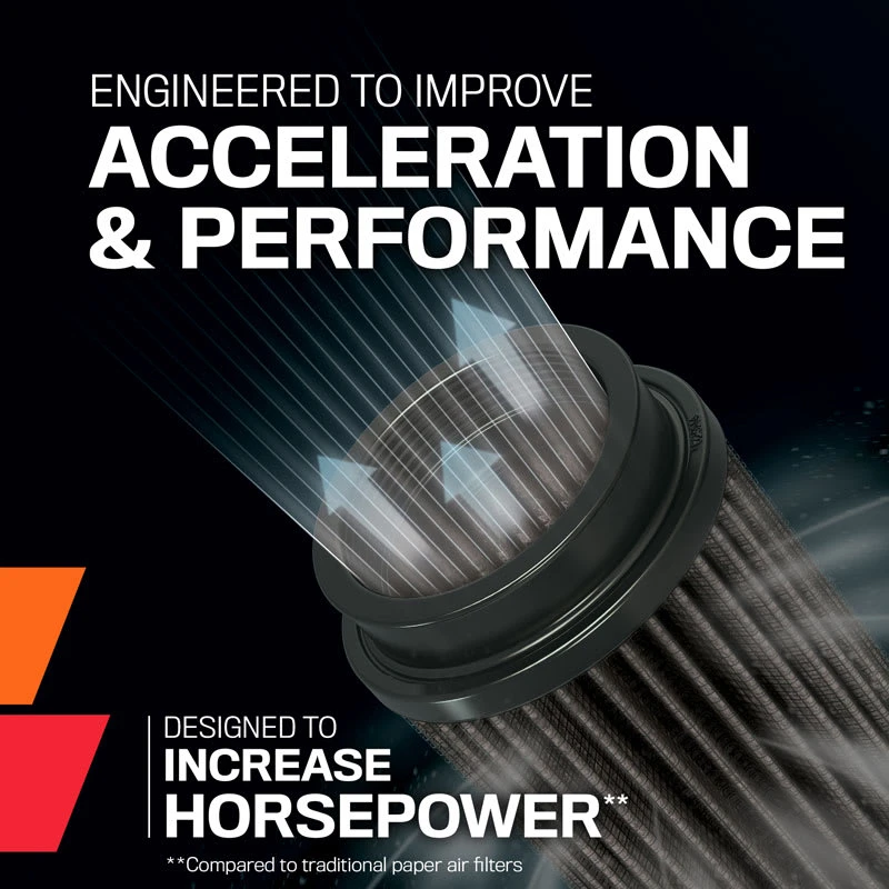 - ENGINEERED POWER: State-of-the-art air filter media is designed to increase horsepower and acceleration as well as improve overall engine performance