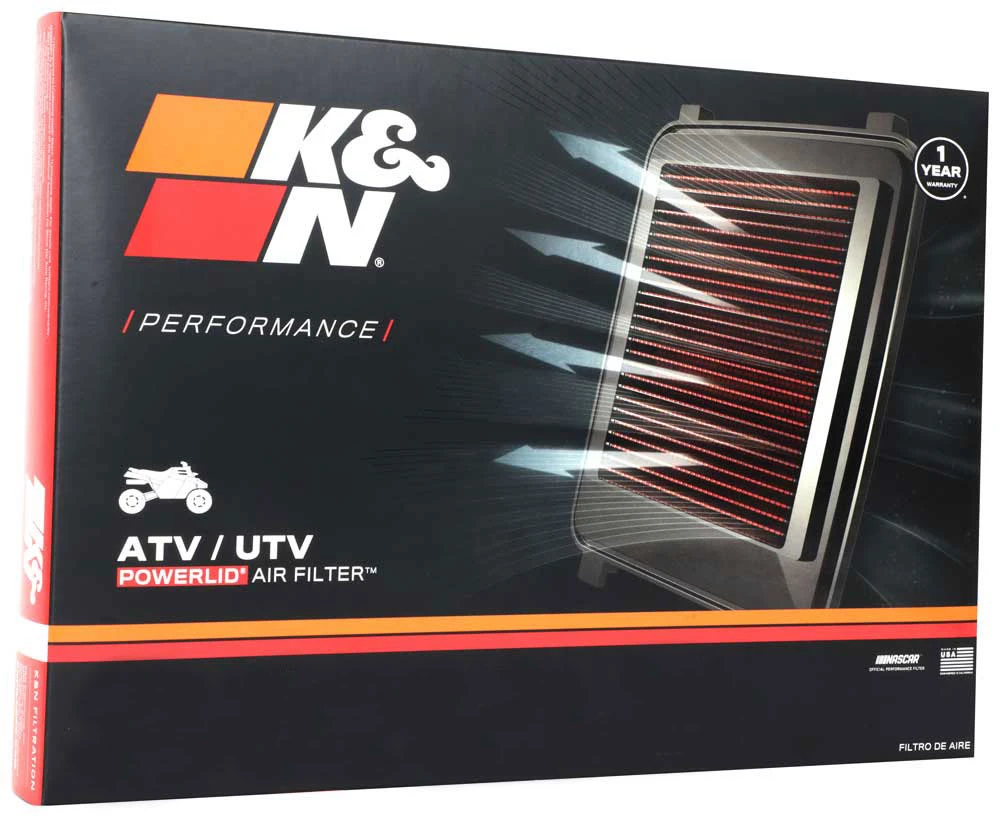 The K&N Powerlid eliminates restrictive ATV intake snorkels by replacing the stock air box lid with a high airflow filter lid. The Powerlid works in conjunction with a K&N replacement air filter (sold separately) to provide excellent filtration with less restriction allowing increased airflow for more horsepower. The POWERLID snaps in place with no air box modification necessary. All K&N Powerlids come with a PreCharger filter wrap for the lid and a carburetor jet selection kit if required.