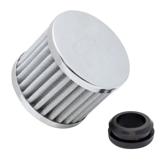 K&N crankcase vent filters are perfect for racing applications, vintage cars or individuals who want to add some aesthetics to their classic carbureted engine. The 62-1590WT crankcase vent filter has a K&N embossed chrome top and steel base. The zinc tube adapts to 1-1/4 inch hole and can be pressed into valve covers. Constructed with a white synthetic media it can be cleaned and reused repeatedly. A rubber fitting is included.