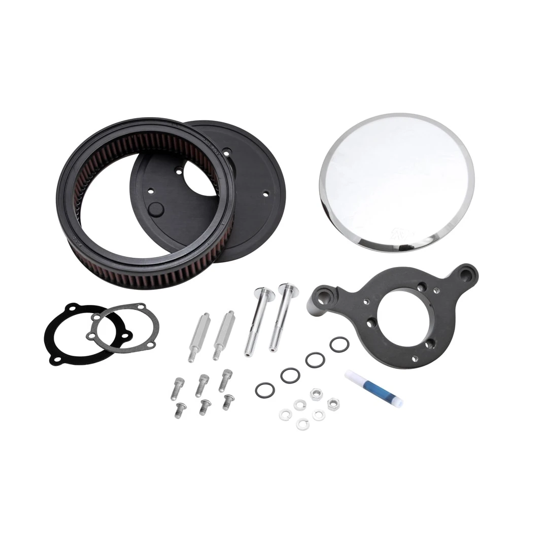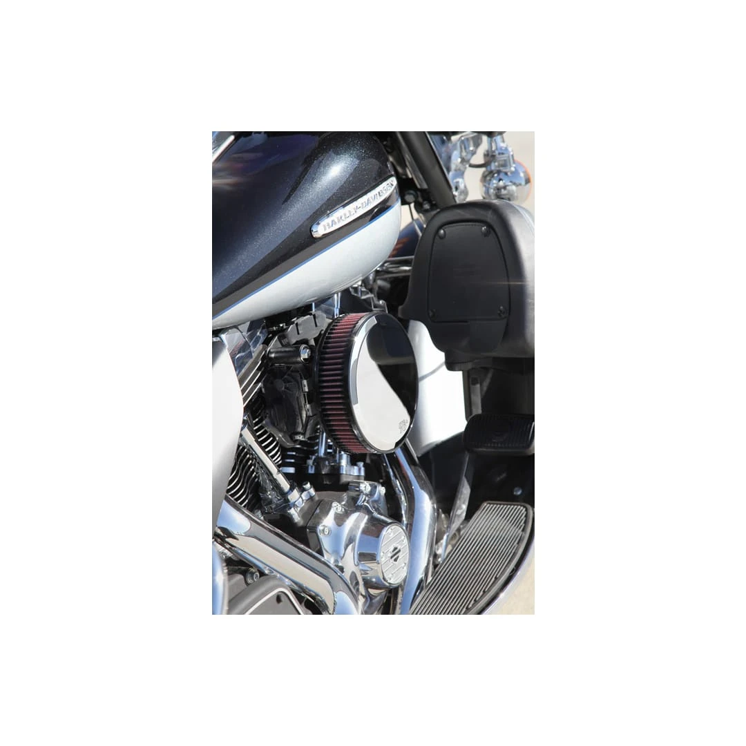 K&N’s Street Metal Series High-Flow Air Intake Systems provide attractive styling, offer increased airflow and deliver more horsepower & torque to your Harley-Davidson motorcycle. These air intake systems eliminate the stock OE air cleaner and replace it with a complete high-flow air intake system to increase power. The sturdy, custom aluminum backing plate mounts directly to the throttle body via an aluminum integrated, internal-run breather system. The air intake system comes with a K&N Air Filter for high air flow and long service intervals. The K&N air filter is washable, reusable, pre-oiled and ready for installation. To help absorb vibration, a durable mounting gasket is also included. A glossy chromed custom cover makes this air intake a definitive style statement. Emphasize your good taste with this one.